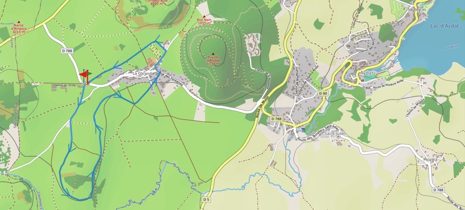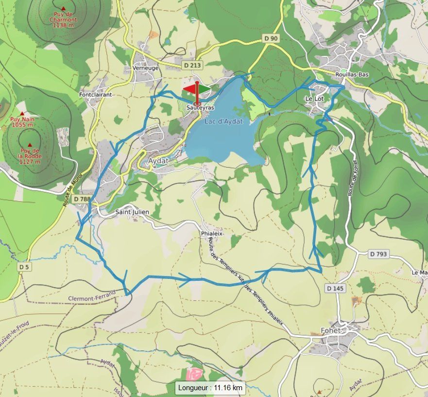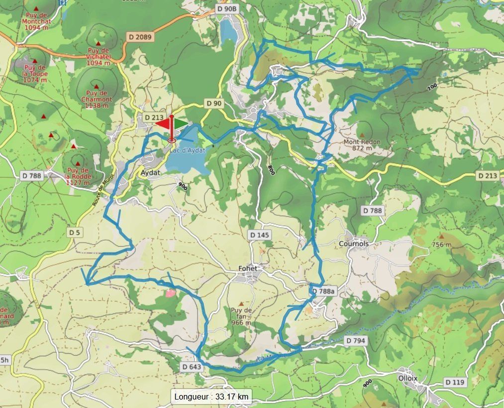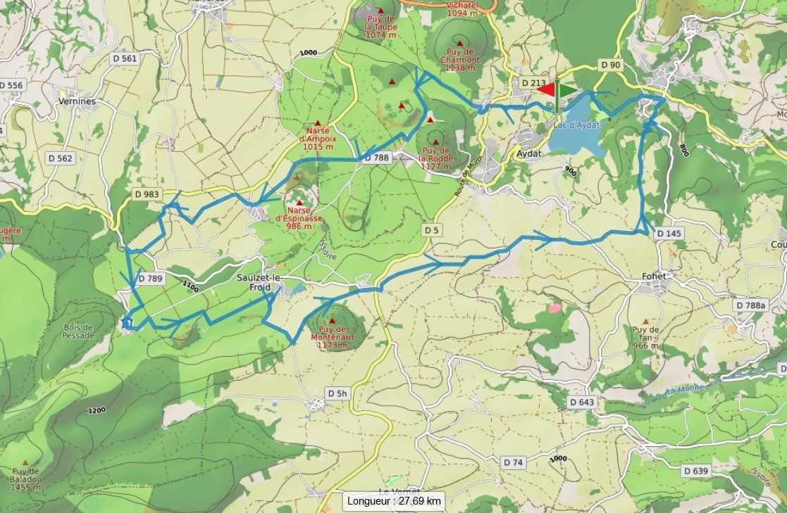 - Boucle de 20km autour des puys (Vichatel, Charmont, Rodde...), au départ du camping (circuit proposé par un campeur, que l'on remercie !)