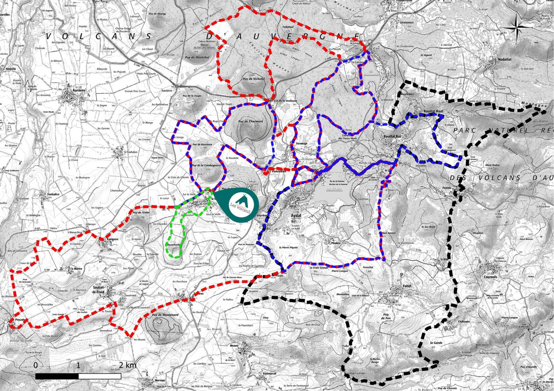 Il existe plusieurs variantes possibles pour raccourcir ou rallonger facilement ces circuits. Pour les circuits au départ du lac d'Aydat, il est possible de les rejoindre directement en VTT depuis le camping ou en voiture.