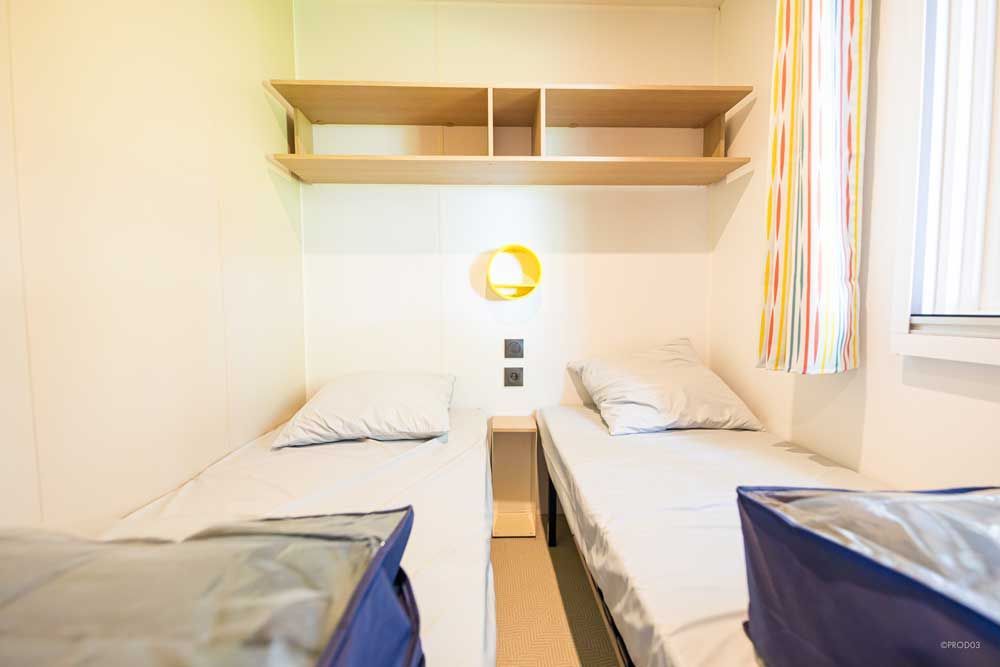 - 1 bedroom with 2 single trundle beds (80x190), one of which can be slid under the other to save space during the day.
