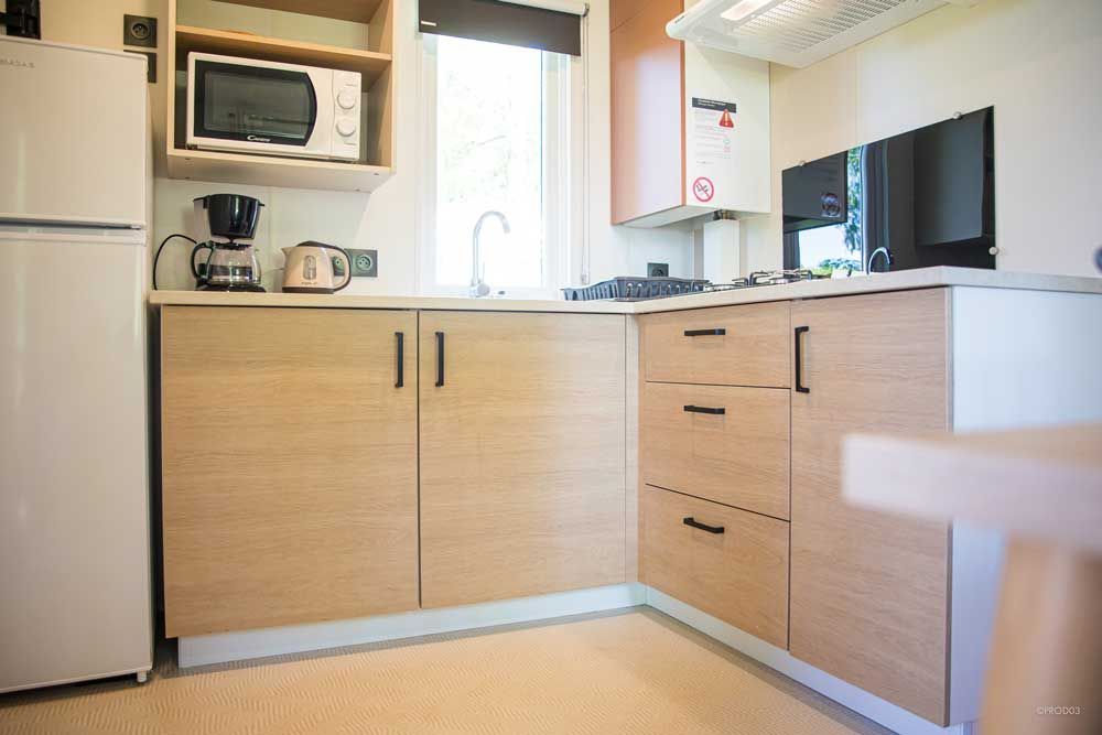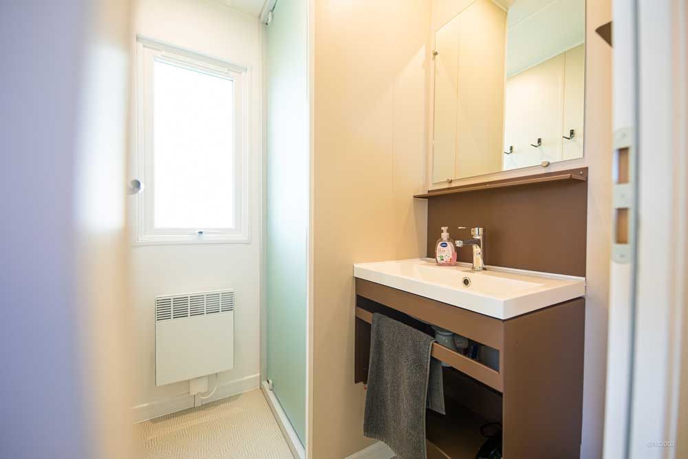 This Loggia mobile home offers 3 independent bedrooms to accommodate up to 6 people comfortably . It is pleasant in all seasons thanks to reinforced insulation and radiators in each room. Its wooden cladding adds a warm note to your stay!