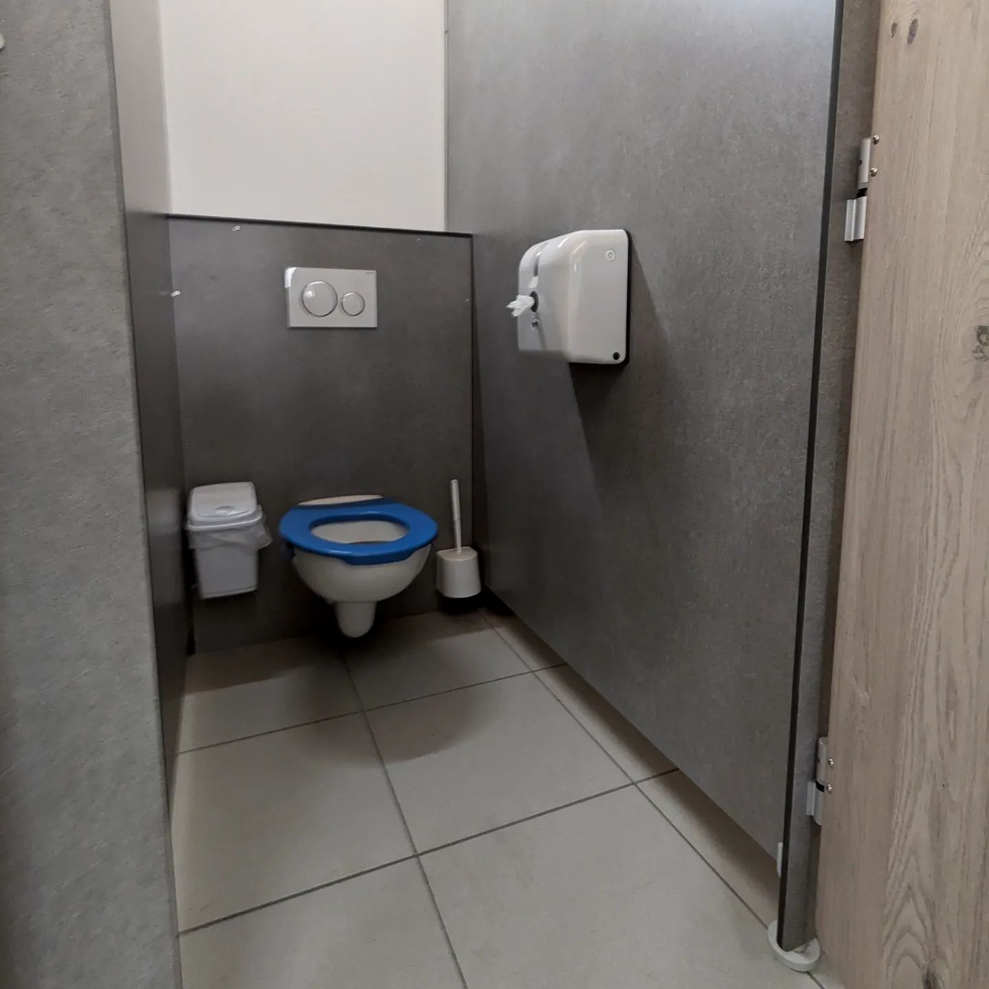 The toilet block was completely renovated in 2024. It is composed of 4 cabins with sink, 8 sinks (including two children), 6 single shower cabins, 2 family cabins with showers and sink , 8 toilets (including one child) , Two hair dryers and two hand dryers are also available.